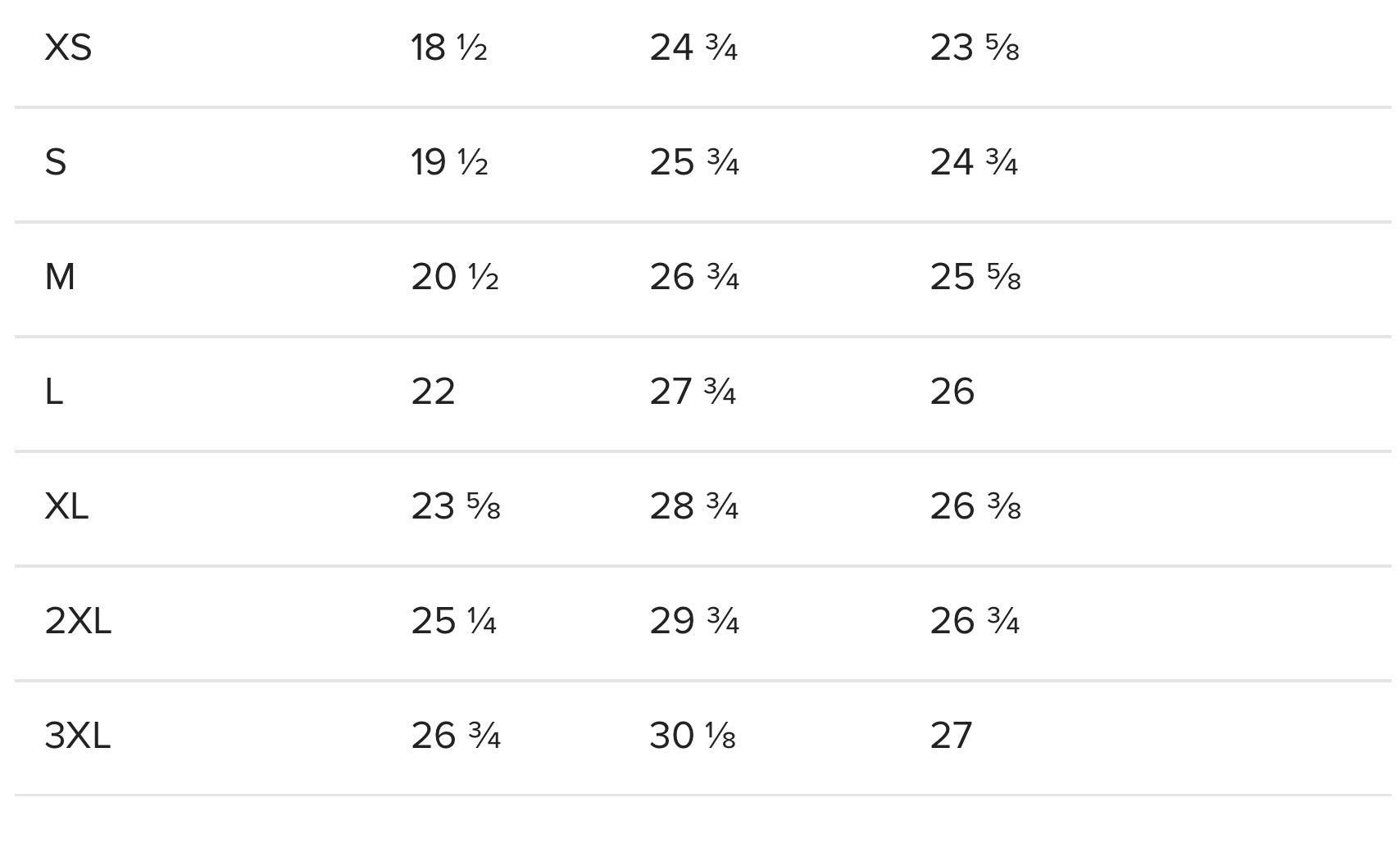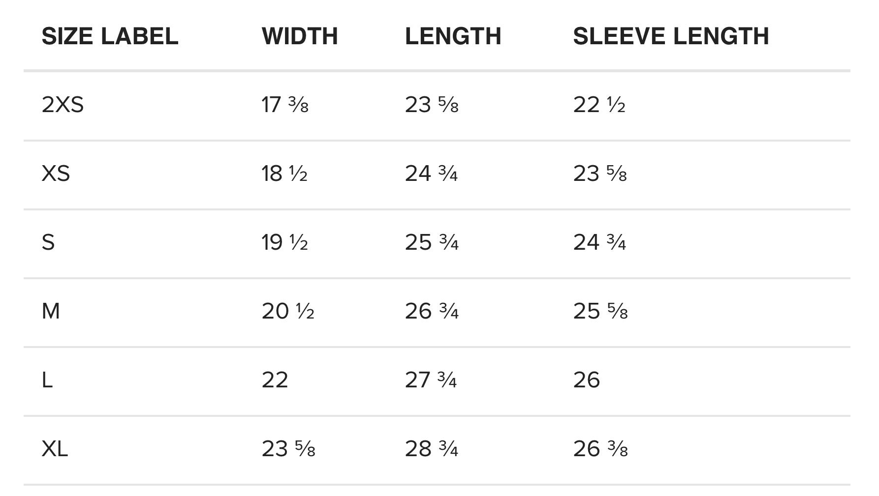 Unisex sizing