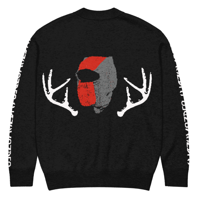 -BACK: mask and antlers on back